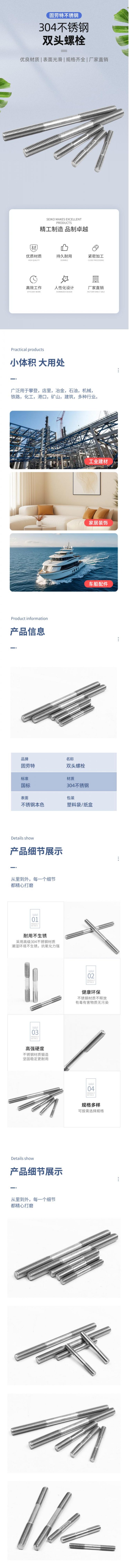 厂家直销304不锈钢双头螺柱非标来图来样定制
